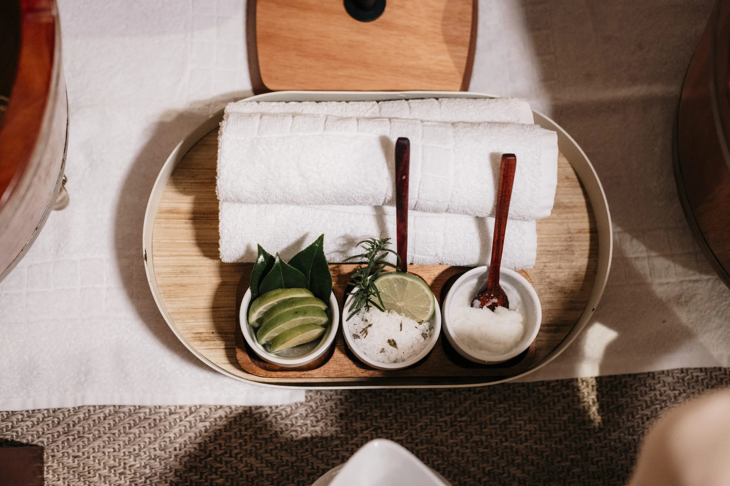 Os Rituais de Banho são experiências sensoriais, iniciam-se com uma esfoliação corporal aromática, seguido de um banho com sais e óleos essenciais, logo após uma hidratação corporal com óleos terapêuticos hidratantes em uma leve massagem relaxante.